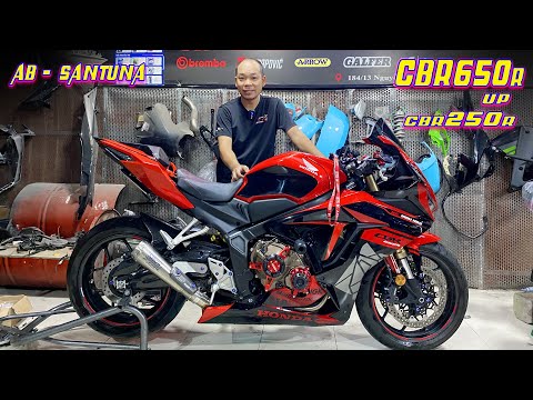 Honda CBR650R độ vây cá mập và ốp yên cánh gió cực ngầu Theo anh Nhựt Linh chủ nhân CBR650R, ngoại hình CBR650R tương đối đẹp, nhưng vẫn có nét gì đó hơi trống trải 2 bên thân xe và đặc biệt là phần đ
