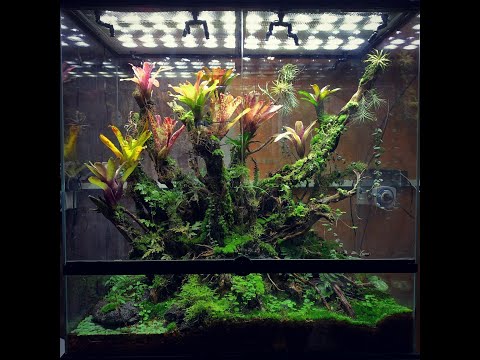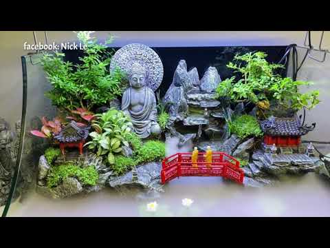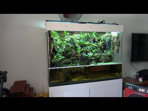 Các bước làm bể cá bán cạn: Chuẩn bị bể cá, đặt hồ cá ở một nơi mà bạn muốn ngắm hàng ngày. Ở đây tôi sử dụng bể với thông số dài 60 cm. Đặt thiết bị lọc đáy, bơm, và bộ chia dẫn ẩm 8 đầu.Thiết kế 1 l