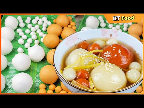 Nước chan chè có độ ngọt dịu, thơm thơm hương gừng. Nguyên liệu làm chè trôi nước truyền thống - Đậu xanh tách vỏ: 300g - Bột nếp: 550g - Gừng tươi: 1 củ - Đường thốt nốt: 400g - Dầu ăn - Mè rang 50g