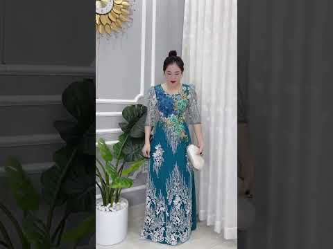 Mẫu đầm dạ hội suông thiết kế nhẹ nhàng với cổ áo rộng, tay ngắn phù hợp cho người lớn tuổi. Thân áo đính kết ren tạo hoạ tiết ấn tượng. Thích hợp mặc đi tiệc, dạo phố... #damdahoi #tuoi50 ... Đầm dạ