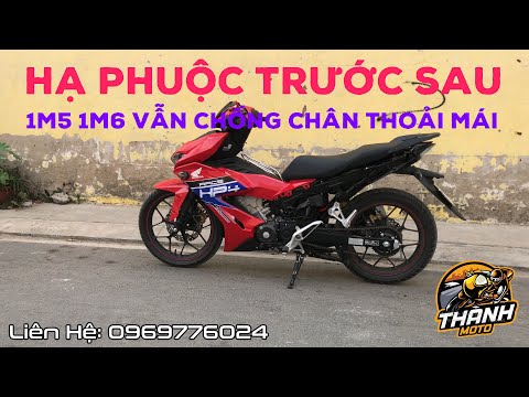 Nhân viên Hoàng Trí đang gắn phuộc sau hạ đuôi cho winner Gắn xong và lắp dàn áo winner vào xe thôi Hạ phuộc xe winner giúp Biker dáng vóc khiêm tốn có thể vi vu tự nhiên Đọ dáng sau khi lắp xong phuộ