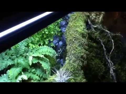 Các bước làm bể cá bán cạn: Chuẩn bị bể cá, đặt hồ cá ở một nơi mà bạn muốn ngắm hàng ngày. Ở đây tôi sử dụng bể với thông số dài 60 cm. Đặt thiết bị lọc đáy, bơm, và bộ chia dẫn ẩm 8 đầu.Thiết kế 1 l