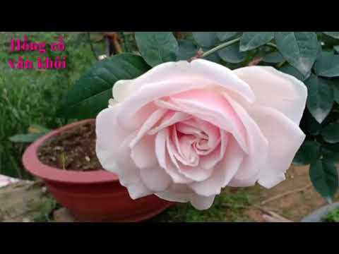 Hoa hồng cổ Vân Khôi màu hồng phấn đẹp tựa như mây