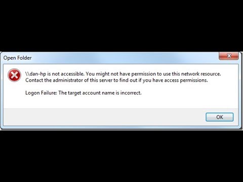 You might not have permission to use this network resource. Contact the administrator of this server to find out if you have access permissions. Logon Failure: The target account name is incorrect.
