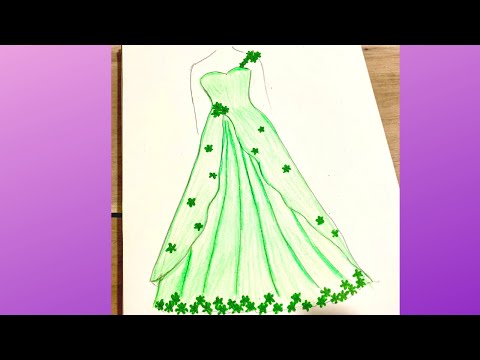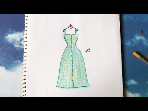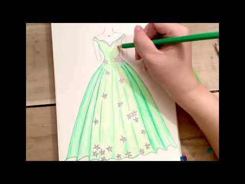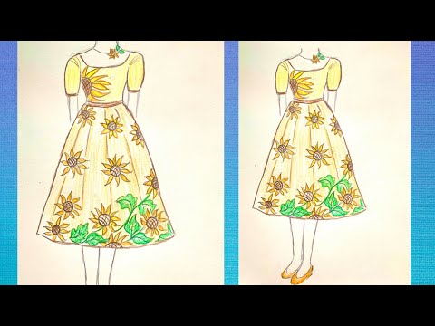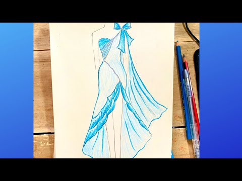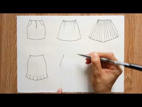 Bạn bắt đầu bằng cách vẽ thân váy đơn giản từ ví dụ thứ hai lên bản phác thảo cơ thể tương tự như ví dụ trên. Bước 2 - Vẽ các nếp gấp: Bạn vẽ các đường gấp dọc theo phần thân trước của váy theo như dá