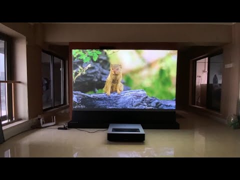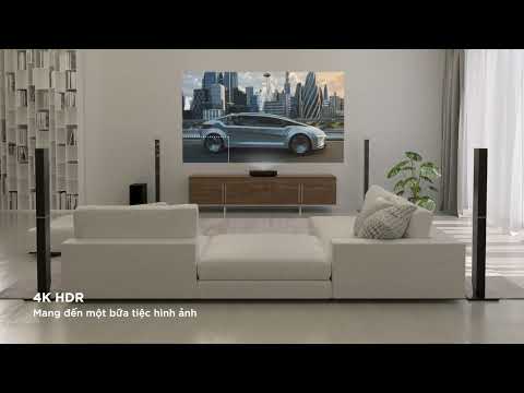 Đây là máy chiếu laser siêu gần, tiết kiệm không gian, có thể chiếu màn hình 150 inch chỉ từ 17,3", biến bất kỳ bức tường nào thành một TV khổng lồ với độ phân giải 4K UHD vượt trội và cực sáng 2400 A