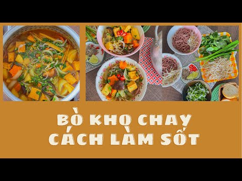 180 gam Bò viên chay 1 Trái cà chua, dưa leo 1/4 Trái thơm 1/2 Củ hành tây 2 Cây cần tàu 1 Cây hành boaro Gia vị đi kèm: muối, tiêu, dầu hào chay, đường, dầu ăn, bột ngọt, bột canh Cách chế biến Video
