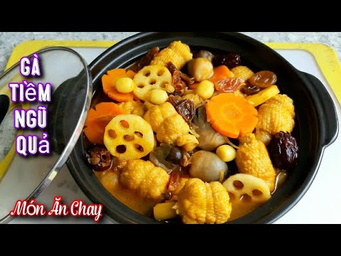 Gà tiềm ngũ quả là một món ăn ngon, bổ dưỡng, nấu từ gà hầm với các nguyên liệu như hạt sen, táo tàu, cà rốt, bạch quả, củ năng, nấm,...Món gà hầm đa vị, lại có nhiều màu sắc phong phú, giúp kích thíc