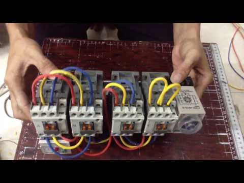 Khi đóng mạch điện contactor 1 đóng mạch điện, động cơ chạy theo kiểu đấu nối sao, lúc này dòng khởi động giảm, momen lực giảm, sau một khoảng thời gian T (timer set) động cơ kéo tải tương đối, thường