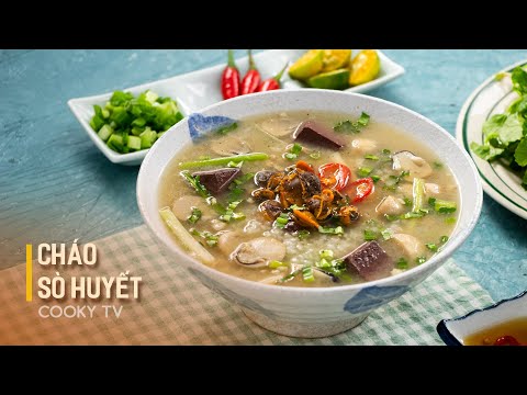 Gạo tẻ đem đi nấu thành cháo, khi cháo đã chín nhừ thì cho sò huyết, trứng muối vào khuấy đều cùng cháo và đợi khi cháo sôi là dùng được; 3.2 Món sò huyết xào với nui. Thành phần: Nui 100g; Sò huyết t