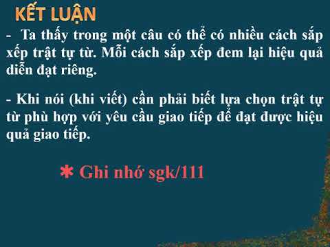 Hướng dẫn soạn bài Lựa chọn trật tự từ trong câu giúp em nắm vững kiến thức và trả lời câu hỏi bài tập phần luyện tập trang 110 SGK Ngữ văn lớp 8 tập 2 Mục lục nội dung 1. Kiến thức cần nắm vững - Ghi