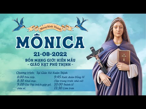 Aug 26, 2021* Thánh nữ MONICA sinh năm 331 tại Ta-gát, châu Phi trong một gia đình theo Kitô giáo. Lúc còn thanh xuân, thánh nữ đã kết hôn với anh Pa-tri-xi-ô và sinh được những người con, trong đó có