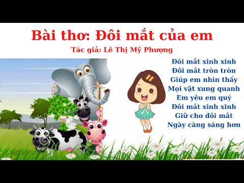 Bài thơ Đôi Mắt Của Em Đôi mắt xinh xinh Đôi mắt tròn tròn Giúp em nhìn thấy Mọi vật xung quanh Em yêu em quý Đôi mắt xinh xinh Giữ cho đôi mắt Ngày càng sáng hơn. (Tác giả: Lê Thị Mỹ Phương) Bài thơ