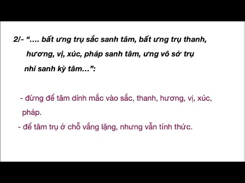 Oct 15, 2021Ưng vô sở trụ nhi sanh kỳ tâm, tức là không để cho tâm kẹt vào sáu trần. Tâm không dính với sáu trần thì đó là trụ tâm. Như thế sáu trần là cái cớ để tâm mình động. Nghĩa là mắt thấy sắc,