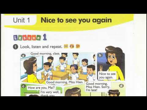 Chào buổi sáng, cô giáo. Chào buổi sáng, các em. Chào buổi sáng, các em. Chào buổi sáng, các em thân mến. Chào buổi sáng, các em. Mời các bạn xem tiếp phần tiếp theo của bài Tiếng anh lớp 4 unit 1 : N