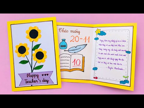 Chắc chắn khi thầy cô nhận được mẫu thiệp 20/11 , sẽ rất tự hào, hạnh phúc về những cô cậu học trò ngoan ngoãn của mình. 2.1. Cách làm thiệp hoa hướng dương Chuẩn bị Kéo, dao rọc giấy, keo dán, xốp dá