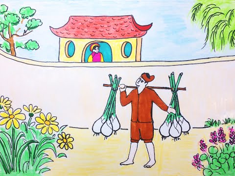 Vẽ tranh minh họa truyện cổ tích Thánh Gióng. Thời Hùng Vương sản phẩm 6, nước Tàu sang trọng sâm chiếm nước ta, Vua Hùng sai bạn đi mọi nước mời nhân từ tài chống giặc nước ngoài sâm. Ở làng Phù Đổng