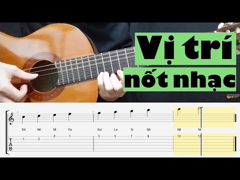 1 Vị trí các nốt nhạc trên khuông nhạc 1.1 Vị trí các nốt nhạc trên cần đàn guitar 1.2 Làm thế nào để đánh đàn guitar đúng ngón? 1.3 Bài tập âm giai, luyện ngón theo âm giai trên đàn guitar Vị trí các