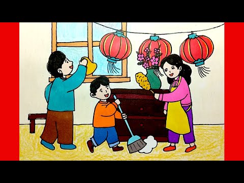Vẽ tranh gia đình sum vầy vào các ngày Lễ, Tết: cùng nhau đón giao thừa, cùng gói bánh chưng, dọn dẹp nhà cửa, sắm sửa quần áo mới, lì xì đầu xuân, gia đình quay quần ngày Trung Thu… Vẽ tranh gia đình