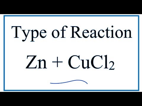 9.1K views 2 years ago In this video we determine the type of chemical reaction for the equation Zn + CuCl2 = ZnCl2 + Cu (Zinc + Copper (II) chloride). Since we have a metal replacing another...