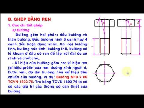 Đính chính: ở phút 11:48, công thức tính chiều dài thân vít được sửa thành: L=m+s+Hđ+a+c.Hướng dẫn vẽ mối ghép vít cấy.